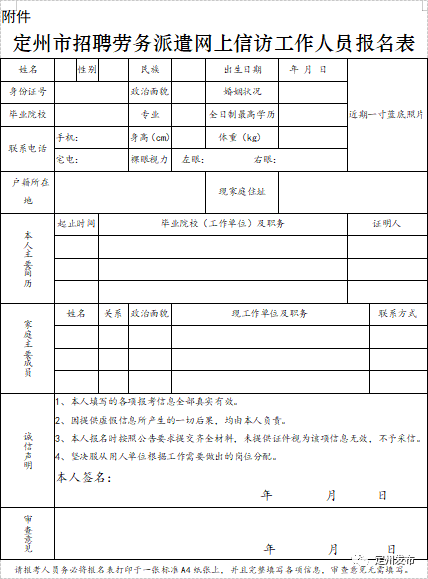 附件:定州市招聘劳务派遣网上信访工作人员报名表