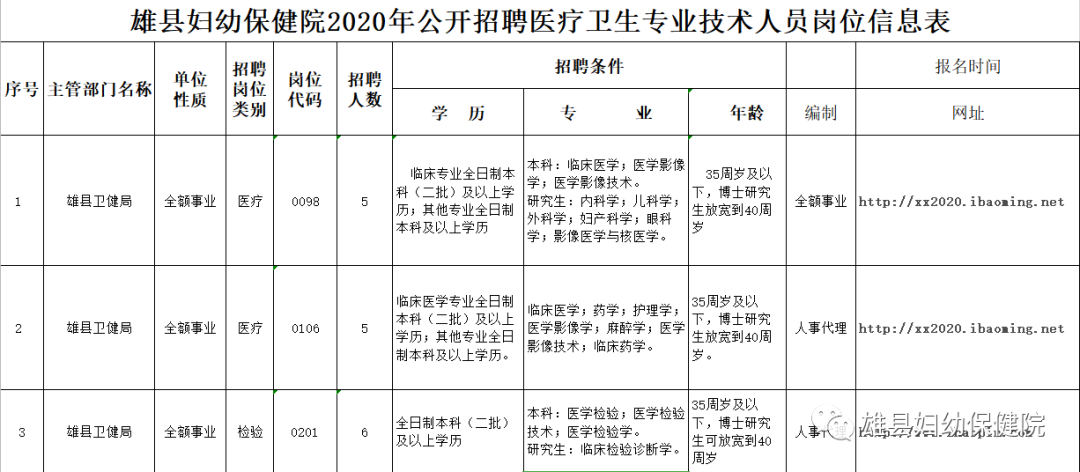原标题:雄县妇幼保健院招聘在编、人事代理16人!