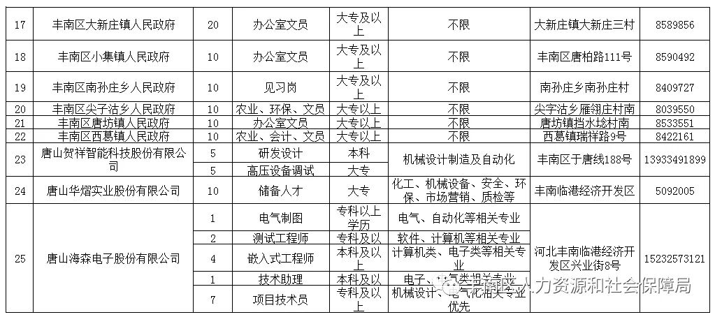 为有效促进我区青年实现就业,按照《关于进一步做好2020年青年就业见习工作的通知》(唐就服[2020]6号)和《关于开展2020年就业见习工作的请示》(丰人社呈字[2020]5号)文件精神,结合我区实际,开展2020年就业见习工作。现将审核合格的25家见习单位(区直10家、乡镇12家、企业3家)、685个见习岗位信息予以公布,欢迎广大高校毕业生报名参加。