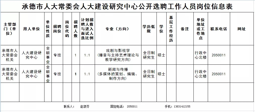 原标题:承德市人大常委会人大建设研究中心公开选聘工作人员