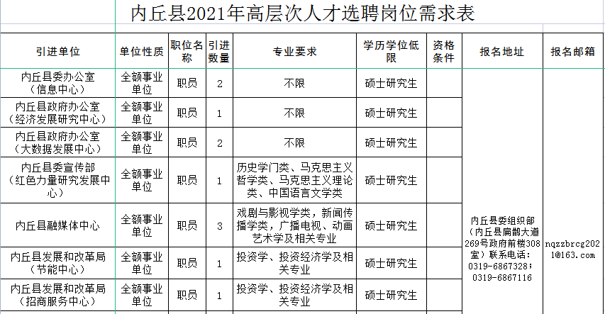 ①《内丘县2021年高层次人才选聘报名登记表》《内丘县2021年高层次人才选聘基本情况统计表》;